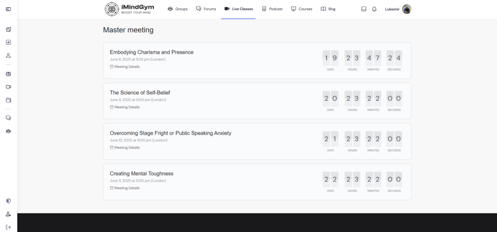 Join live-streamed classes, where you’ll learn advanced techniques to build confidence, develop resilience, and maximize your mental performance. Each session includes real-time mentoring, practical exercises, and interactive Q&A sessions to help you apply what you learn to real-life situations.
